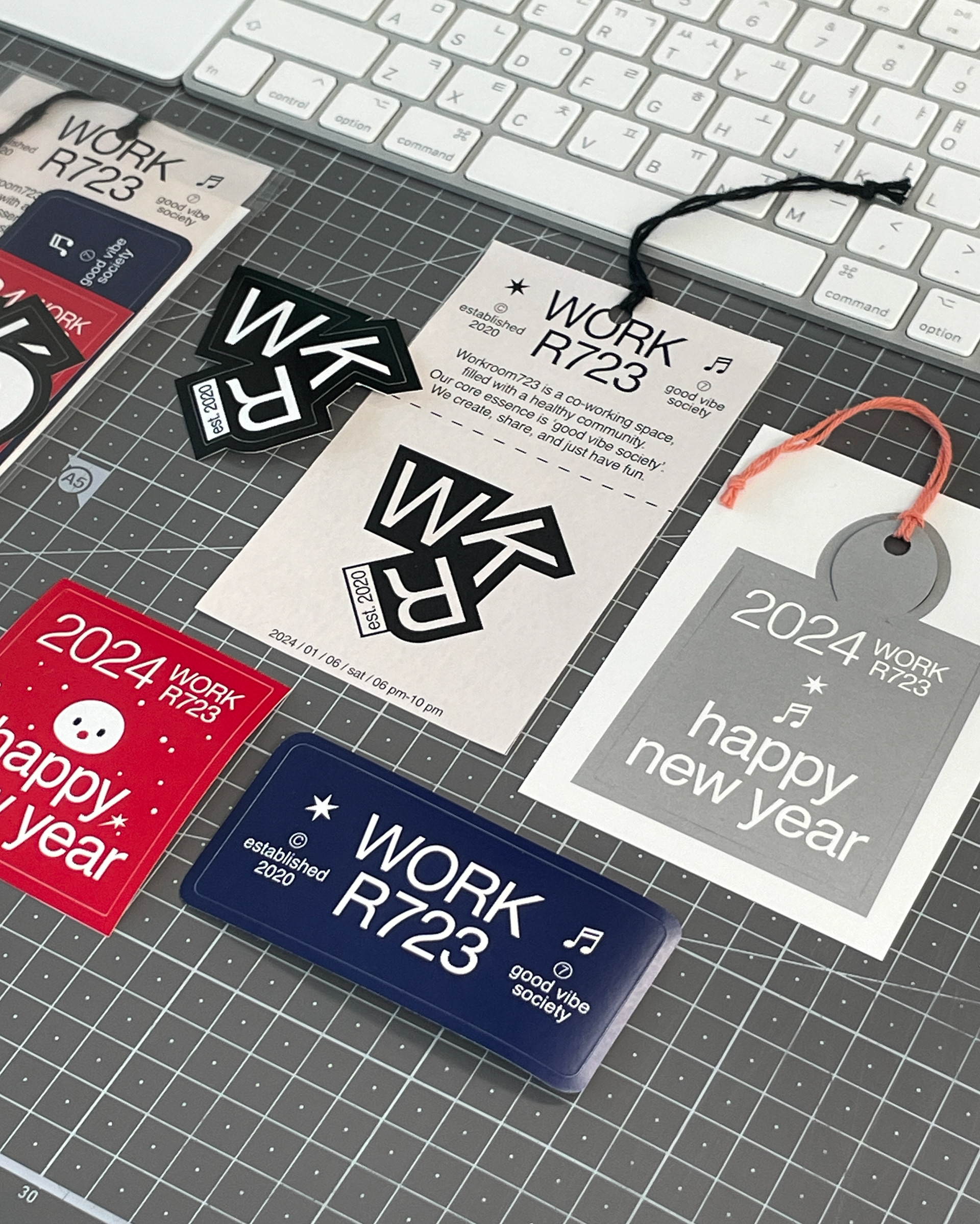 워크룸은 건강한 커뮤니티라는 핵심 가치 아래 운영되고 있습니다. 불필요한 것을 하지 않고 본질에 집중하되, 재미있게 하자는 워크룸의 철학에서 MINIMAL / WIT를 디자인 원칙으로 세웠습니다. 또, 여러 사람과 장면이 쌓이는 속성에서 스크랩을 키워드로 도출해 브랜드 전개에 활용하고 있습니다. 이 원칙은 공간과 사진, 언어 등 브랜드 전반에서 느낄 수 있습니다.